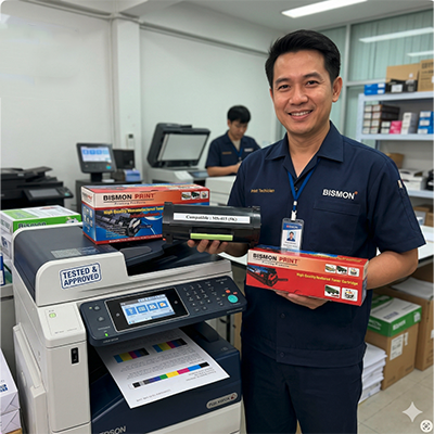 ยินดีต้อนรับ บริษัท บิสม่อน พริ้นท์ จำกัด เป็นบริษัทนำเข้าและจัดจำหน่าย ค้าส่งสินค้าประเภท ตลับหมึก สำหรับเครื่องเลเซอร์ พริ้นท์เตอร์ ทั้งชนิด ขาวดำ และ สี โดยเป็นตลับหมึกเทียบเท่า (Remanufactured Cartridge) คุณภาพสูงจากต่างประเทศโดยตรง พร้อมทั้งจำหน่าย อุปกรณ์ทั้งหมดสำหรับตลับหมึกเทียบเท่าทั้งหมด